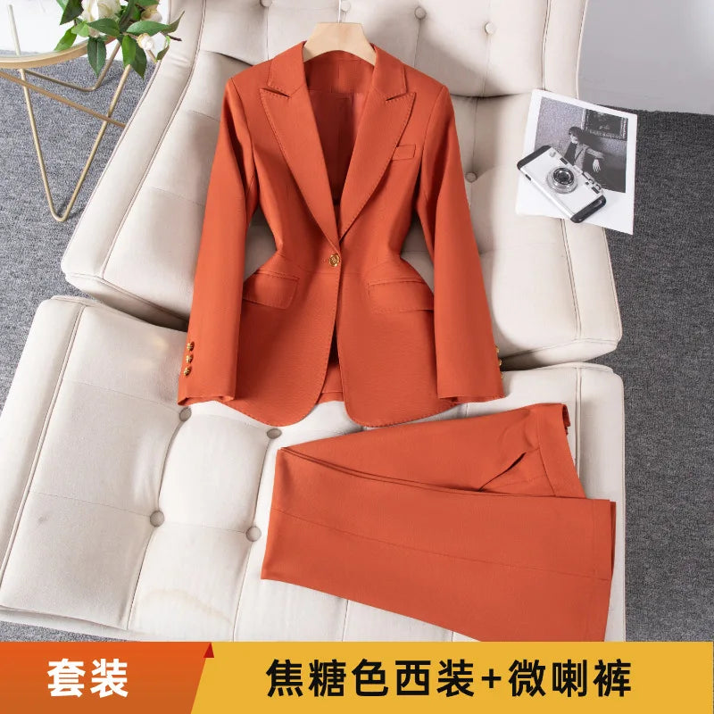 High-end suit set for women-elegant, goddess-like style; college students job interviews, professional attire, ma